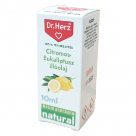 A Dr.Herz 100% természetes citromos-eukaliptusz illóolaj kiváló minőségű, hígítatlan olaj, mely természetes citronellolt tartalmaz. Aromaterápiás célokra alkalmas, ideális a levegő frissítésére párologtatással vagy illatosítással. Használata során fontos a bőrreakciók elkerülése érdekében a megfelelő védőfelszerelés alkalmazása. A terméket szobahőmérsékleten, fénytől és nedvességtől védve, gyermekek elől elzárva kell tárolni. Termékcsaládunkban megtalálhatók még vitaminok, étrend-kiegészítők, belsőleges oldatos cseppek, hidegen sajtolt olajok, valamint gyógynövényes krémek is, melyek többféle egészségügyi területet támogatnak.