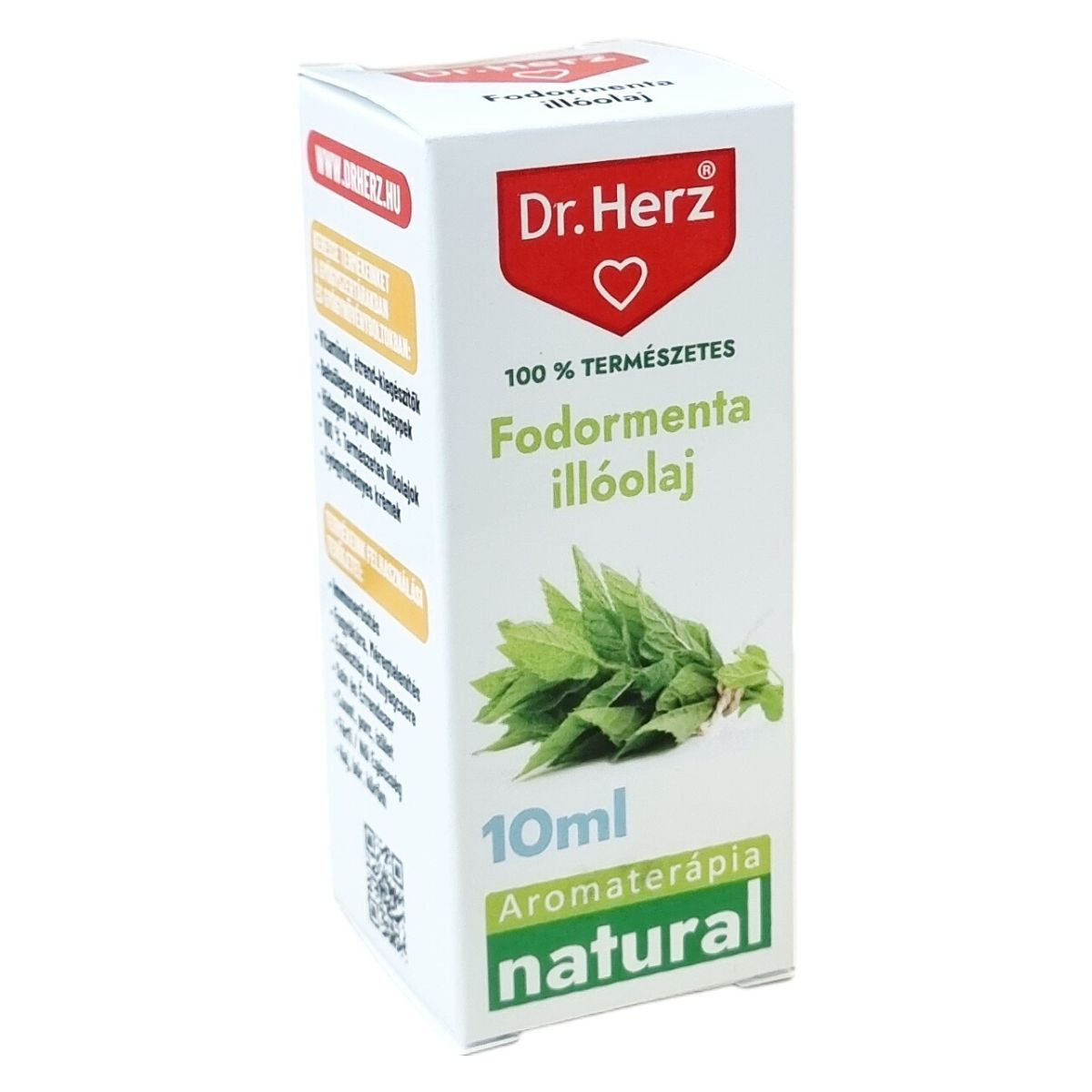 A Dr.Herz fodormenta illóolaj 10 ml kiszerelésben kiváló minőségű, 100%-ban természetes illóolaj, amely aromaterápiára és légfrissítésre egyaránt alkalmas. A termék természetes limonént tartalmaz, amely hozzájárulhat a frissítő hatáshoz. Használata elsősorban párologtatásra és illatosításra javasolt. A fodormenta illóolajat gondosan kell tárolni gyerekektől elzárva, és a terméket a megfelelő védőfelszerelés használatával kell kezelni, mivel allergiás reakciókat válthat ki. A termék használata során különösen fontos a biztonsági előírások betartása, és lenyelés esetén azonnal segítséget kell kérni toxikológiai központtól vagy orvostól. A Dr.Herz termékcsalád széles kínálatában megtalálhatók további vitaminok, étrend-kiegészítők, belsőleges oldatos cseppek, hidegen sajtolt olajok, gyógynövényes krémek, amelyek különféle egészségügyi területeken nyújtanak támogatást.