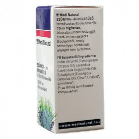 Szerencsére a rovarok ki nem állhatják ezt a nekünk egyébként kellemes illatot. A természetben hasznos segítő és védelmező társad lesz kerti grillezésnél, kirándulásoknál. Téged is imádnak a kis vérszívó szúnyogok, és semmi kedved osztozkodni velük a lakásodon? Akkor ez a természetes illóolaj keverék Neked készült. Nem kell, hogy a rovarcsípés elleni védekezés azt jelentse, hogy mérgező, irritáló anyagokat keljen elviselned. A MediNatural Szúnyog és Rovarűző illóolaj keverék hatóanyagait kizárólag 100%-os természetes illóolajok alkotják.