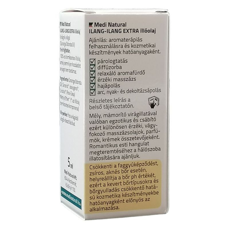 Az Ilang-ilang az egyik legromantikusabb illóolaj a tökéletes lazítás eszköze, jó hatással van a hangulatunkra, az érzékekre, felszabadítja a gátolt érzelmeket, serkenti a nemi vágyat. A Fülöp-szigeteken a fiatal házasok nászágyára szórtak ilang-ilang virágokat, hogy megkönnyítsék az első éjszaka izgalmait. Ezért különösen érzéki, vágyfokozó masszázsolajok, parfümök, krémek összetevőjeként. Romantikus esti hangulat megteremtéséhez a hálószoba illatosítására ajánljuk.
