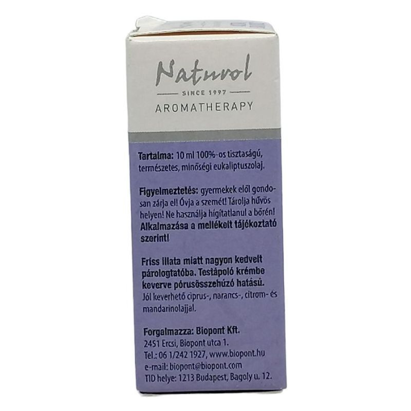 100%-os tisztaságú, természetes, minőségi ausztrál eukaliptuszolaj. Párologtatáshoz: az illóolajból pár cseppet vízzel telt aromalámpába vagy radiátoron elhelyezett párologtatóba cseppentsünk. Fürdéshez: adjunk a fürdőkádban lévő meleg vízhez 4-8 csepp tejben vagy mézben higított illóolajat és fürdés előtt alaposan keverjük el. 10-15 percig tartózkodjunk benne.