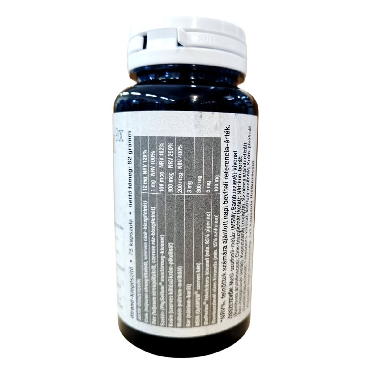 Metil-szulfonil-metán (MSM), Bambuszlevél-kivonat, Cink-biszglicinát, Réz-biszglicinát, Szelénes mustármag-kivonat, Króm-pikolinát, Nátrium-molibdát
