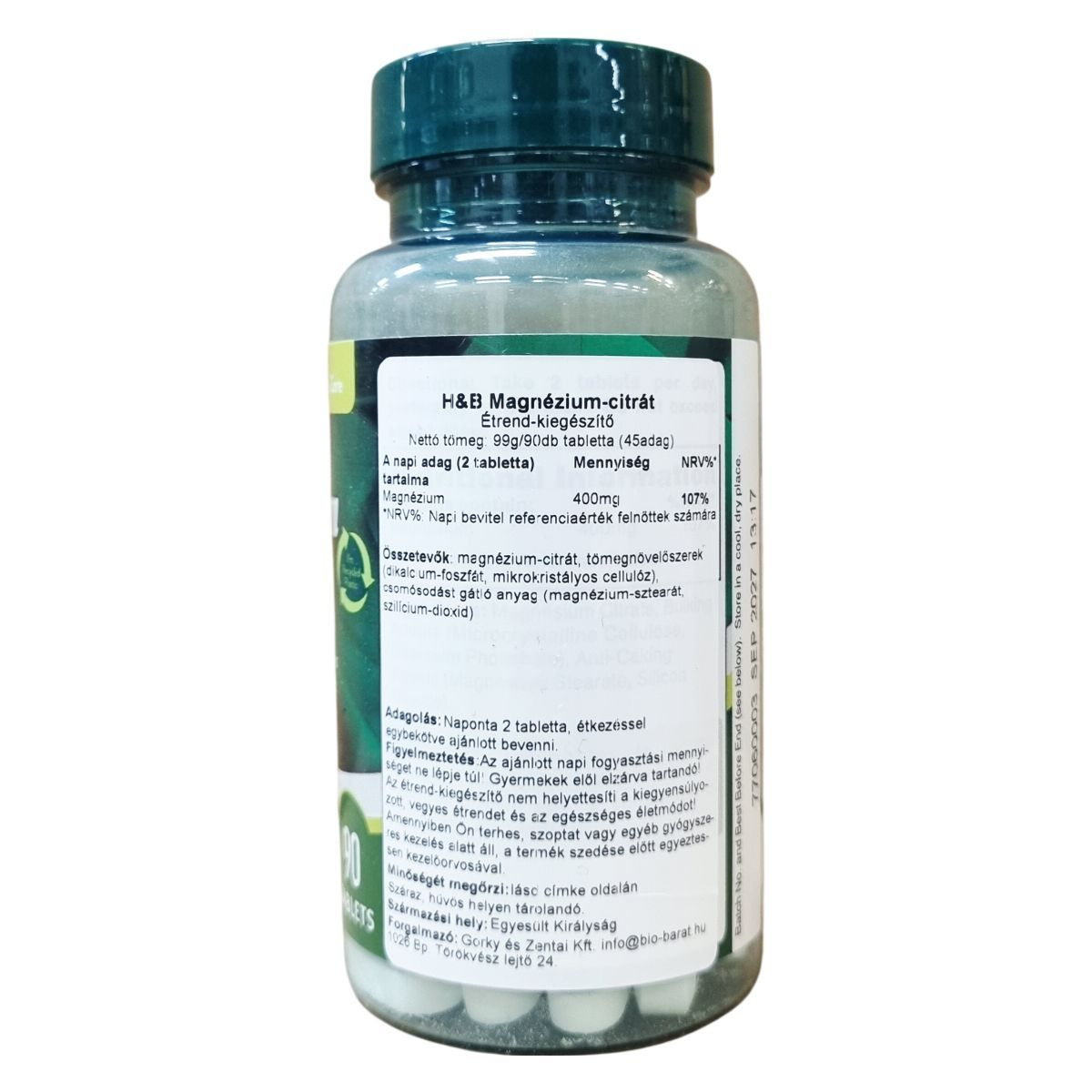 magnézium-citrát, dikalcium-foszfát, mikrokristályos cellulóz, magnézium-sztearát, szilícium-dioxid