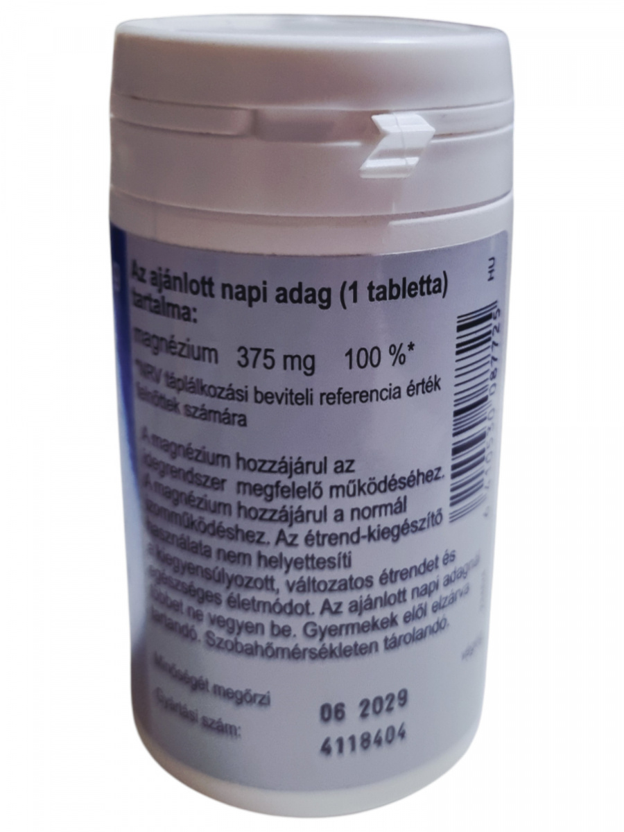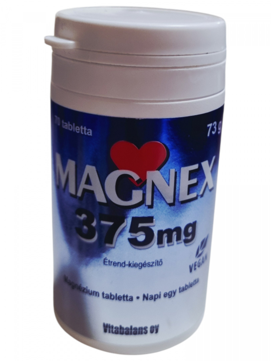 A MAGNEX 375 mg tabletta minden tablettája 375 mg magnéziumot tartalmaz, amely a napi ajánlott bevitel 100%-át fedezi. A magnézium hozzájárulhat az idegrendszer, izmok megfelelő működéséhez, így aktív életmód vagy fokozott szellemi, fizikai igénybevétel esetén is ideális választás lehet. Vegán, egyszerű adagolású készítmény, Finnországban gyártva.