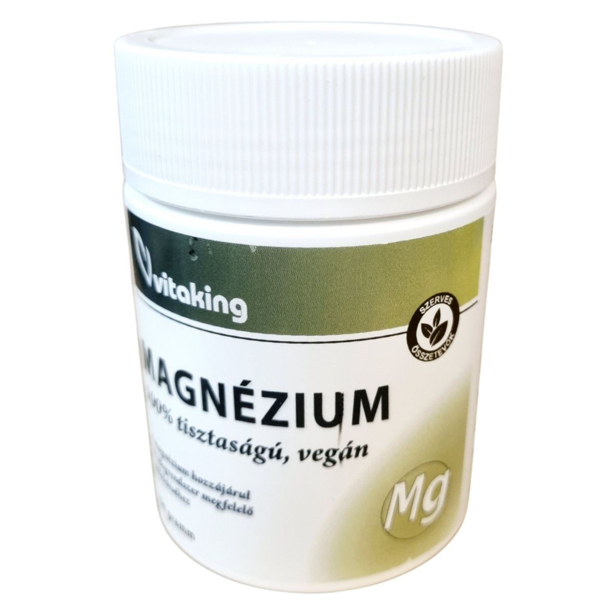 A Vitaking Magnézium étrend-kiegészítő 100% tisztaságú, vegán magnézium-citrátot tartalmaz, amely hozzájárulhat az idegrendszer megfelelő működéséhez, valamint a fáradtság és a kifáradás csökkentéséhez.