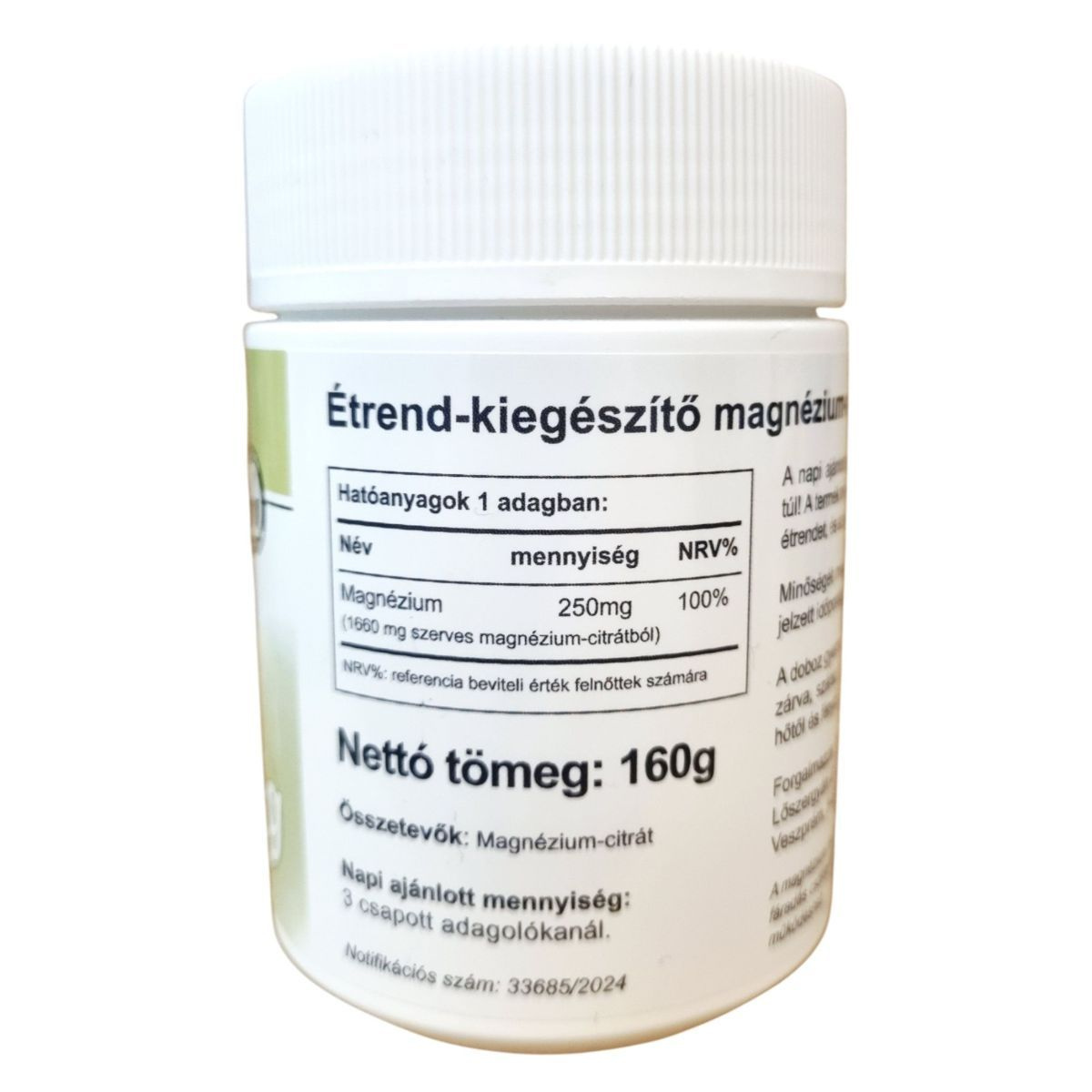 A Vitaking Magnézium egy 100% tisztaságú, vegán étrend-kiegészítő, amely magnézium-citrát formájában biztosítja a szükséges magnéziumbevitelt. A termék hozzájárulhat az idegrendszer megfelelő működéséhez, a fáradtság és kifáradás csökkentéséhez, valamint a normál izomműködés fenntartásához. A termék 160 grammos kiszerelésben kapható, és a napi ajánlott mennyiség 3 csapott adagolókanál. Fontos, hogy a terméket gyermekek elől elzárva, száraz, hűvös helyen tároljuk, és ne lépjük túl az ajánlott napi mennyiséget. A termék forgalmazója a Vitaking Kft., és a notifikációs száma 33685/2024.
