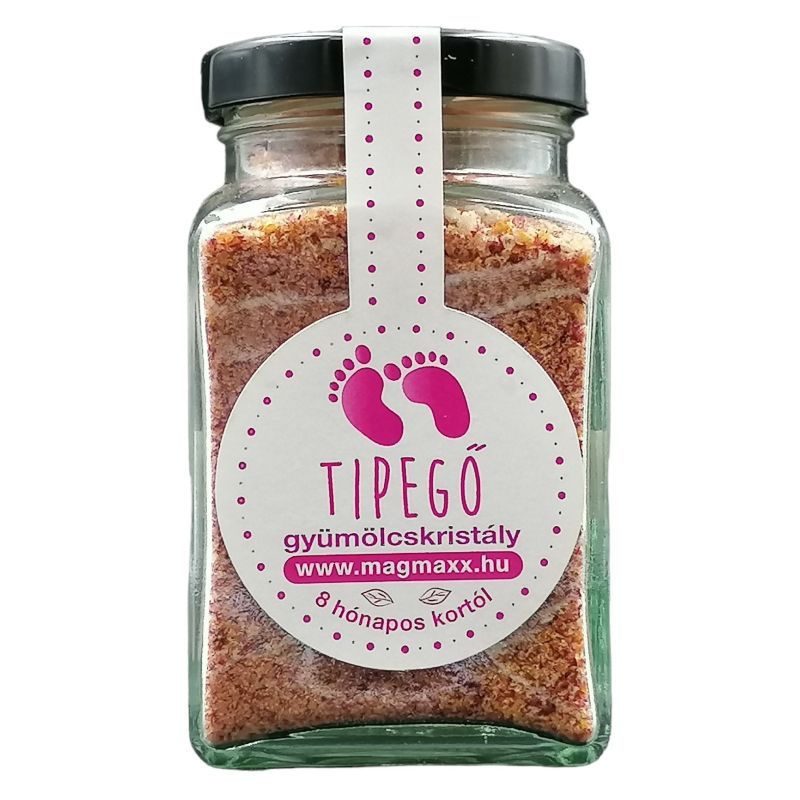Gyümölcs- és zöldségalapú gyümölcskristály kisgyermekek számára 8 hónapos kórtól, alma, répa, sütőtök és többféle gyümölcs felhasználásával, hozzáadott cukor nélkül.