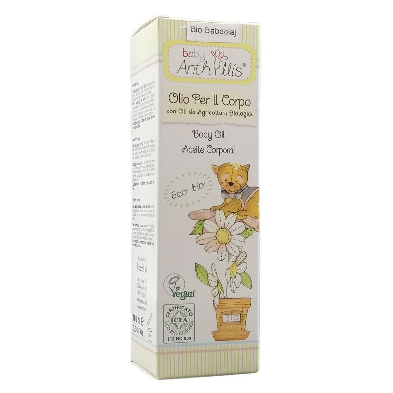 Ez a Baby Anthyllis termék négy, ellenőrzött biológiai termesztésből származó olajból áll: szójaolaj, olívaolaj, mandulaolaj, napraforgóolaj. Ez az olaj speciálisan a babák érzékeny bőrére kifejlesztve. Finom illatú, könnyen szétoszlatható és nem hagy zsíros filmet a bőrön. Tisztító olajként is alkalmazható, hidratál és erősíti a bőr védőgátját. Az olaj tartósítószer mentes. E vitamint tartalmaz, mint egy természetes antioxidáns.