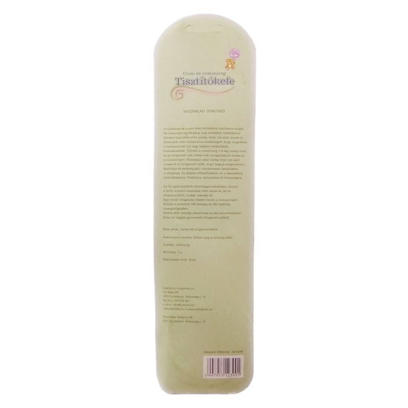 A készletben található egy nagyobb méretű üvegmosó kefe a cumisüveg tisztítására. A kisebb méretű kefe pedig az etetőcumi belső felületének tisztítására szolgál.
