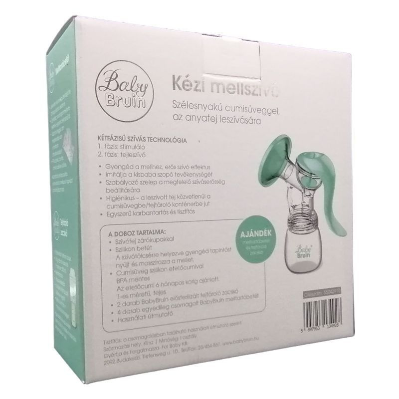 BabyBruin kézi mellszívó kétfázisú szívás technológiával széles nyakú cumisüveggel.