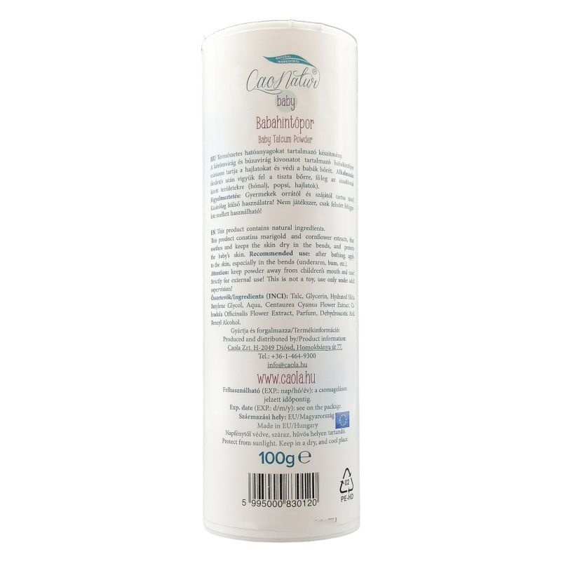 A körömvirág és búzavirág kivonatot tartalmazó babahintőpor szárazon tartja a hajlatokat, felszárítja a visszamaradt vizet, így védve a babák bőrét. Alkalmazás: fürdés után- vagy szükség esetén- vigye fel a tiszta bőrre, főleg az izzadásnak kitett területekre (hónalj, popsi, hajlatok). Figyelmeztetés: gyermekek szájától és orrától tartsa távol! Ügyeljen, hogy szembe ne kerüljön! Kizárólag külső használatra! Nem játékszer, csak felnőtt felügyelete mellett használható! Parabén- és színezékmentes termék!