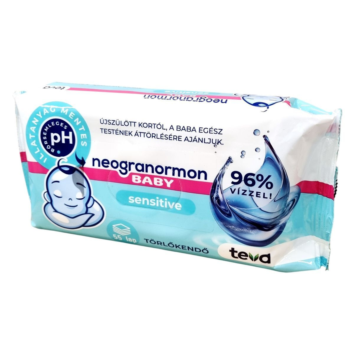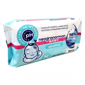 A neogranormon baby sensitive törlőkendő vastag, puha, textilhatású, bőrbarát összetevőinek köszönhetően gyengéden ápolja és hatékonyan tisztítja a baba érzékeny bőrét. Illatanyagmentes és bőrsemleges pH értékű, így alkalmas a baba egész testének áttörlésére már újszülött kortól. A termék műanyagot tartalmaz, ezért használatakor figyelembe kell venni a nyálkahártyákkal és szemmel kapcsolatos óvintézkedéseket. A gyártási tétel számát és a felhasználhatóság időpontját a csomagolás hátoldalán találja a vásárló.