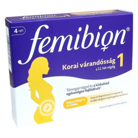 A Femibion® Korai várandósság 1 egy olyan étrend-kiegészítő filmtabletta, amely elsősorban az első trimeszter végéig támogatja az anyát és a magzat egészséges fejlődését. A termék alapja a Folsav Plusz, amely a folsav és L-metilfolát kombinációja, és segítheti a folátszint növelését a szervezetben, amely fontos a velőcsőzáródási rendellenességek kockázatának csökkentésében. Továbbá tartalmaz kolin-bitartrátot, amely hozzájárulhat a normál homocisztein-anyagcseréhez, valamint fontos ásványi anyagokat, mint a vas, magnézium, cink, réz, jód és szelén. Ezek az ásványi anyagok szerepet játszanak a sejtosztódásban, az immunrendszer és az anyai szervezet támogatásában, továbbá segíthetik a fáradtság és kifáradás csökkentését. A termék szigorúan glutén- és laktózmentes, és gyermekek elől elzárva tartandó. Az étrend-kiegészítő nem helyettesíti a kiegyensúlyozott, vegyes étrendet és az egészséges életmódot, ezért használata előtt ajánlott orvosi vagy gyógyszerészi tanácsot kérni, különösen más készítmények szedése esetén.