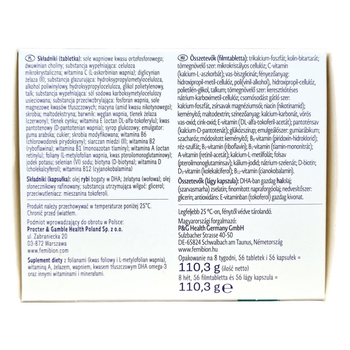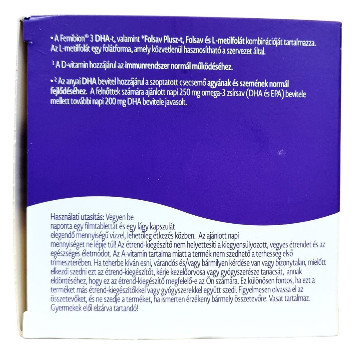 A Femibion® 3 DHA-t, valamint Folsav Plusz-t, Folsav és L-metilfolát kombinációját tartalmazza. Az L-metilfolát egy folátforma, amely közvetlenül hasznosítható a szervezet által.
