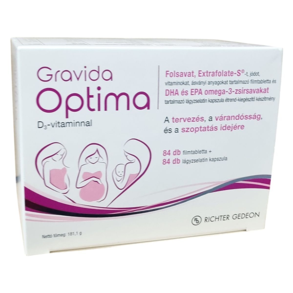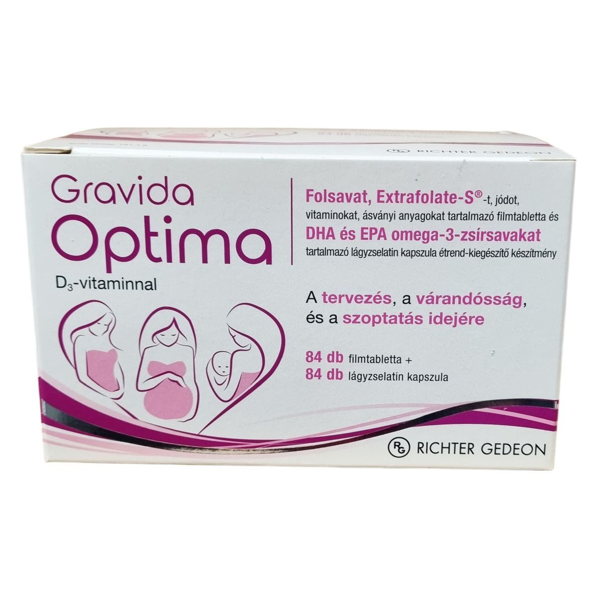 A Gravida Optima kifejezetten a fogantatás tervezésekor, valamint a várandósság és a szoptatás időszakában javasolt a megnövekedett vitamin- és ásványianyag-szükséglet támogatására. A termék folátot – folsavat és Extrafolate-S® formában – tartalmaz, amely részt vehet a sejtosztódásban, hozzájárulhat az anyai szövetek növekedéséhez, valamint szerepet játszhat a normál aminosav-szintézisben és a vérképződésben. Az alacsony anyai folátszint a fejlődő magzat velőcső-záródási rendellenességének kockázati tényezője lehet, amelynek csökkentése érdekében napi 400 µg folsav rendszeres fogyasztása javasolt. A termék DHA-t is tartalmaz, amely az anya szervezetéből vagy anyatejből felvéve hozzájárulhat a magzat és az anyatejjel táplált csecsemő agyának és szemének megfelelő fejlődéséhez. A DHA és EPA omega-3-zsírsavak napi mennyisége plusz a javasolt felnőtt napi adag további DHA-t biztosít. A készítmény filmtablettából és lágyzselatin kapszulából áll, amelyek komplexen fedezhetik a terhesség és szoptatás idején szükséges vitamin- és ásványianyag-bevitelt.