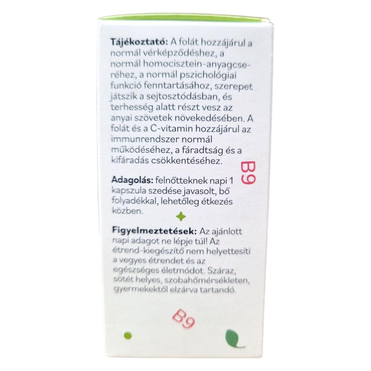A folát, mint vízben oldódó vitamin, elengedhetetlen a sejtek normál működéséhez, különösen a vörösvértestek képződésében. A folát kapszula szedése segíthet a különböző hiánybetegségek megelőzésében, és különösen ajánlott a vegetáriánusok és vegánok számára, akiknek nehezebb lehet a megfelelő mennyiségű B9-vitamin bevitele.