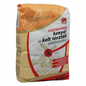 Ez főleg azokra vonatkozik, akik a '80-as években lettek lisztérzékenyek, mert akkor a kukoricaliszt volt "a liszt". Több alapanyag (burgonya-, és kukoricaszármazék) felhasználásával igyekeztünk egy semleges ízű lisztkeveréket előállítani. Összetevők: kukoricakeményítő, rizsliszt, kukoricaliszt, burgonyakeményítő, sűrítő anyagok (xantán gumi, guar-gumi), emulgálószer (zsírsavak mono-, és digliceridjei), cukorréparost. Nettó tömeg: 1000 g. Not. Szám: 1278/2006. Tápérték 100 gramm késztermékben: Energiatartalom: 1551 kJ (369 kcal), Fehérje: 1, 3 g, Szénhidrát: 89, 5 g, Zsír: 0, 2 g. Minőségét megőrzi: 12 hónapig.