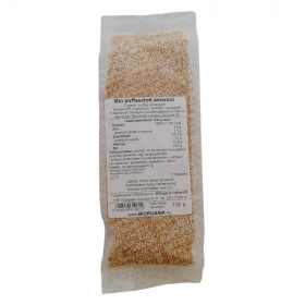 Felhasználható ezen túl süteményekben, sütőipari termékekben, levesekben, salátákban, illetve töltelék- és paníranyagként is. Jó tudni: lisztérzékenyek is fogyaszthatják. Ellenőrzött ökológiai gazdálkodásból származó termék. Összetevők: patogatott amarant mag Ellenőrzött Ökológiai Gazdálkodásból HU-ÖKO-01. Ellenőrizte: Biokontroll Hungária Nonprofit Kft. Tápanyagtartalom (100g-ban): Energiaérték: 1575KJ / 374kcal, Fehérje: 14,5g, Szénhidrát: 51g, Zsír: 6,5g. Ásványi anyagok: vas, kálcium, kálium, magnézium, nátrium, foszfor, cink. Vitamin: B1, B2, B3, B6, C.