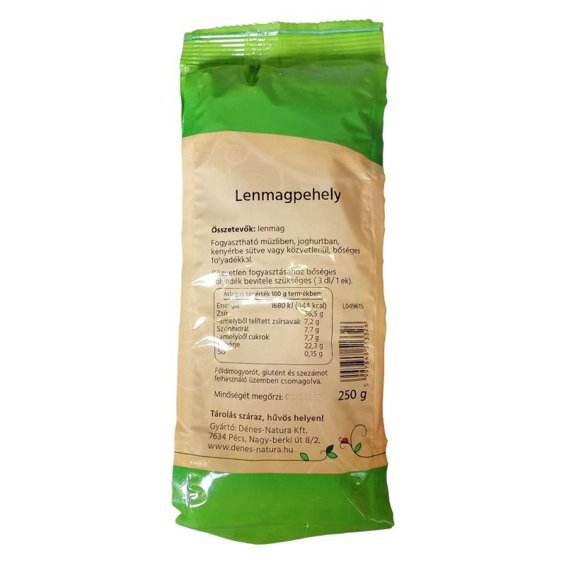 A Dénes Natura lenmag pehely egy rendkívül tápláló és sokoldalú élelmiszer, amely gazdag rostokban és Omega-3 zsírsavakban. A lenmagpehely a lenmag őrölt változata, amely megőrzi a magok jótékony hatásait, miközben könnyen emészthető formában kínálja azokat. A lenmag természetes módon támogatja az emésztést, hozzájárul a szív- és érrendszeri egészséghez, valamint segíthet a gyulladások csökkentésében. A termék kiváló választás lehet azok számára, akik egészséges életmódra törekednek, és szeretnék gazdagítani étrendjüket tápanyagokban gazdag élelmiszerekkel. A lenmagpehely íze enyhén diós, ami remekül illik különböző ételekhez, így könnyedén beilleszthető a mindennapi táplálkozásba.