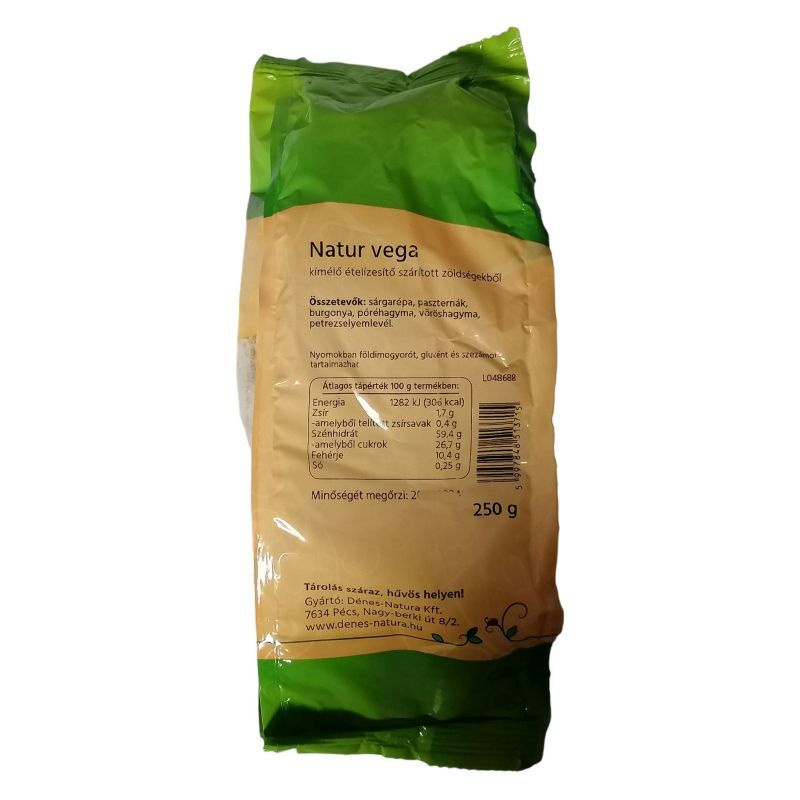 Összetevők: tengeri só, sárgarépa, vöröshagyma, pasztinák, burgonya, póréhagyma, zeller, kukoricadara, szőlőcukor, petrezselyemzöld, fokhagyma, gombapor, olívaolaj, fűszerek.
