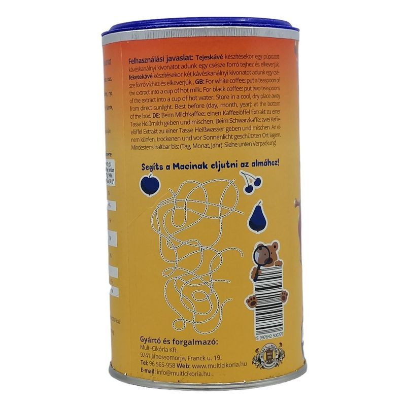 Azonnal oldódó cukrozott cikória-gabonakávé kivonat. Kellemes aromájú, koffeinmentes ital készíthető belőle.