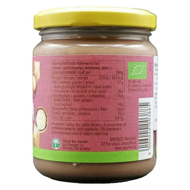 A Rapunzel bio makadámiadió krém egy különleges ínycsiklandó termék, amely a legfinomabb, frissen pirított makadámiadióból készült. Ez a krém gazdag ízvilágával és krémes állagával az egészséges táplálkozás kedvelőinek ideális választás. A makadámiadió természetes édes, vajas íze tökéletesen harmonizál a különböző ételekkel, így nemcsak önállóan, hanem más ételek kiegészítőjeként is megállja a helyét. A krém 26%-os makadámiadió tartalmának köszönhetően nemcsak ízletes, hanem tápláló is, hiszen tele van vitaminokkal és ásványi anyagokkal. Az E- és B2-vitaminban gazdag, valamint jelentős mennyiségű vasat, kalciumot és magnéziumot tartalmaz, így hozzájárulhat a mindennapi tápanyagbevitelhez. A termék 100%-ban ellenőrzött ökológiai gazdálkodásból származik, így biztos lehet benne, hogy a legjobb minőségű alapanyagokból készült.