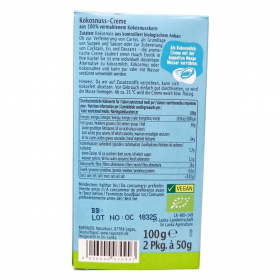 A Rapunzel kókuszkrém 100% őrölt kókuszdióból készül, amely kontrollált ökológiai gazdálkodásból származik és semmilyen adalékanyagot nem tartalmaz. A krém általában szilárd halmazállapotú, de körülbelül 25°C fölött megpuhul vagy folyékony lesz. Egyedi, ízletes, egzotikus aromát kölcsönöz ételeknek, és rugalmasan adagolható alternatívája a kókusztejnek, kókuszmusnak vagy kókuszszírnek. Használható önmagában vagy vízzel hígítva, például 50 g krémet 100 ml vízzel keverve kókusztejként. A termék vegán és bio minősítéssel rendelkezik, és Sri Lankán előállított. A csomagolás 2 darab, egyenként 50 g-os adagokból áll.