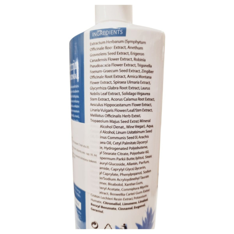 Összetevők: Termálvíz a Podhájska forrásból, Gyógynövények: Legyezőfű, Árnika, Vadgesztenye, Közönséges aranyvessző,