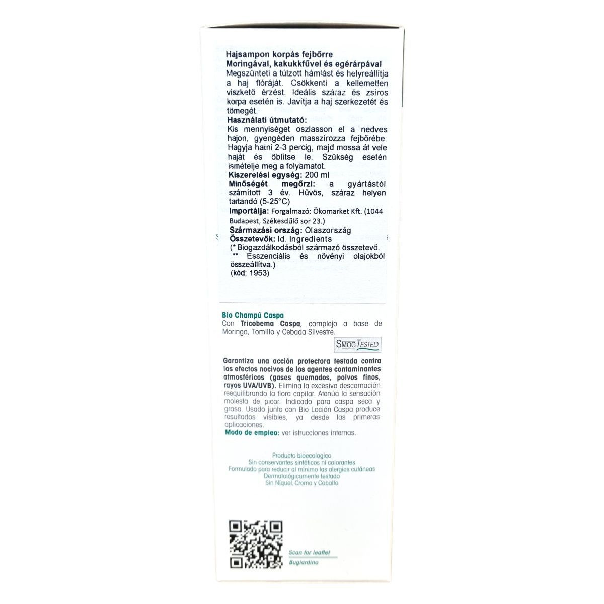 Korpásodás elleni bio sampon, amely véd az atmoszferikus szennyeződések káros hatásaival szemben, segít megszüntetni a túlzott hámlást és javítja a haj szerkezetét és tömegét.