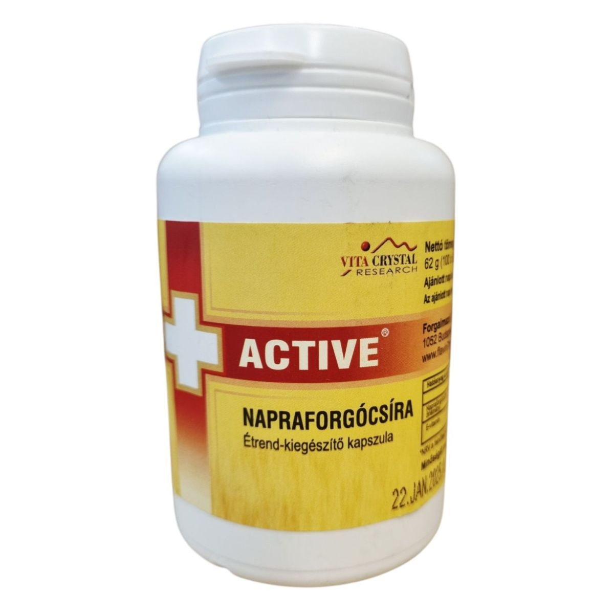 A VITA ACTIVE Napraforgócsíra kapszula napraforgócsíra őrleményt és E-vitamint tartalmazhat, amelyek hozzájárulhatnak a sejtek oxidatív stresszel szembeni védelméhez.