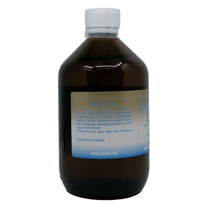 Az aranykolloid hidratáló alkalmazása: érett, ráncos bőrre, öregségi foltokra, nap által károsodott, pigmentált bőrre, zsíros és pattanásos bőrre, rugalmatlan, fakó bőrre, fáradt, értágulatos, bőrre . A készítmény csomagolásában található 20 ml-es kisüveget feltöltve, napi 3 alkalommal permetezzük az arcra, vagy a kívánt felületre. Az Aranykolloid Hidratáló, ugyanúgy, mint egyéb ezüstkolloid termékeink az egészségre ártalmatlan, kizárólag arany allergia esetén ellenjavallt az alkalmazása. Összetevők: Arany (kolloid) 3 ppm, Koncentráció tömeg 100 ml-ben %: Aqua: 99,99 %, Arany: 0,01 % .