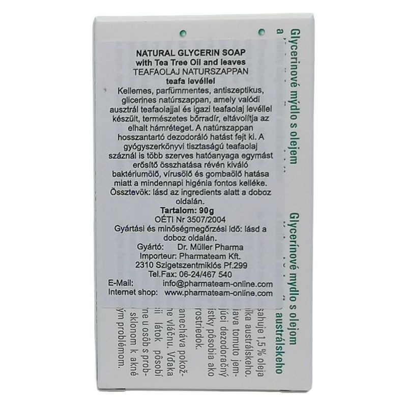 Tiszta, natúr, parfümmentes, glicerines teafaolaj szappan.