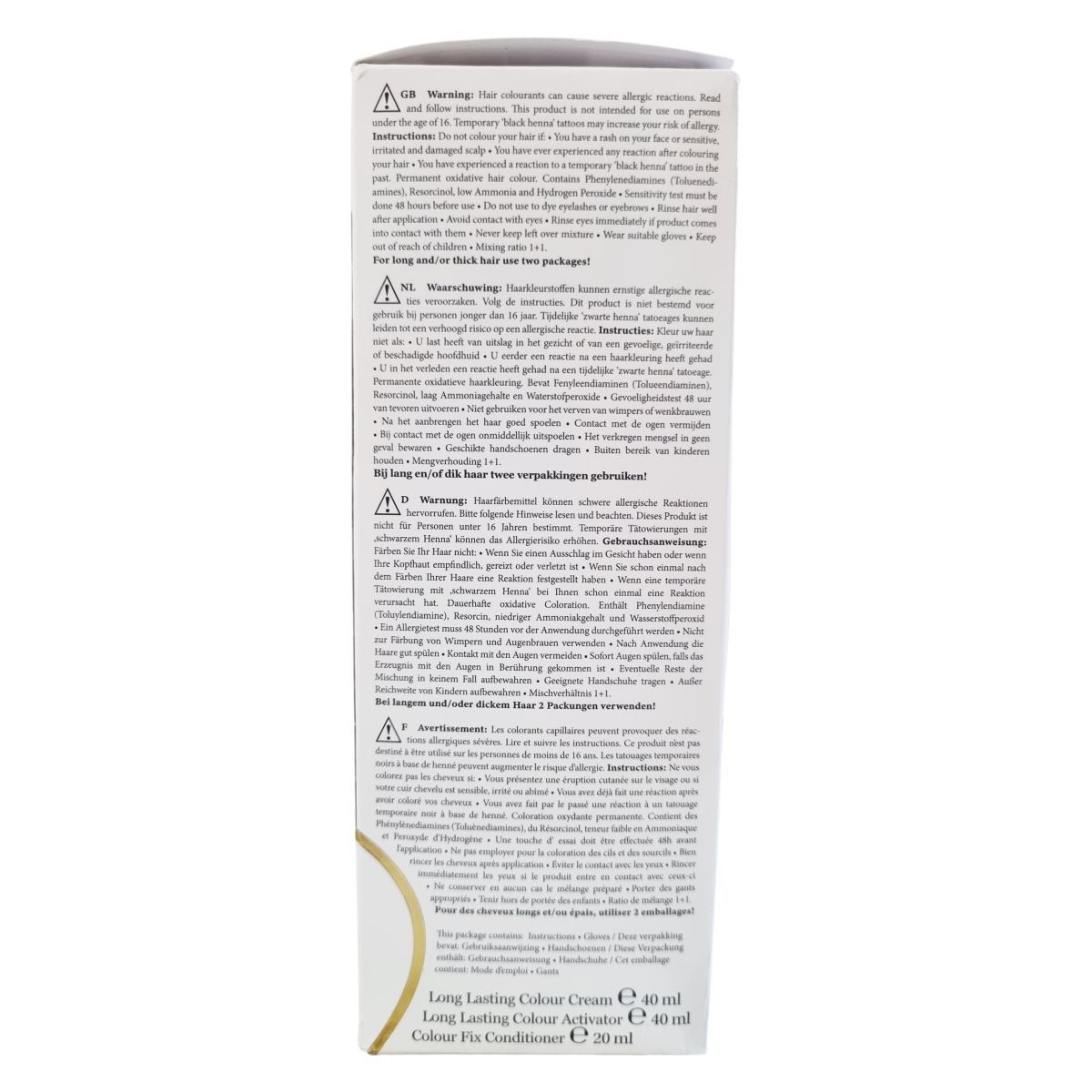 A termék csak 16 éven felül használható. A hajfestés előtt érzékenységi teszt javasolt 48 órával. Nem ajánlott használni, ha az arcbőrön kiütés, érzékenység vagy irritált fejbőr jelentkezik, vagy ha korábban reakció lépett fel hajfestés vagy ideiglenes fekete hennás tetoválás után. A készítmény használata során kerülni kell a szemmel való érintkezést, esetleges szembe jutás esetén azonnal ki kell öblíteni. A festést követően a hajat alaposan ki kell mosni. A keveréket nem szabad eltenni későbbi használatra. A festéshez védőkesztyű használata javasolt. Hosszú és/vagy dús haj esetén két csomag használata ajánlott. A keverési arány 1+1. Nem használható szempilla és szemöldök festésére.