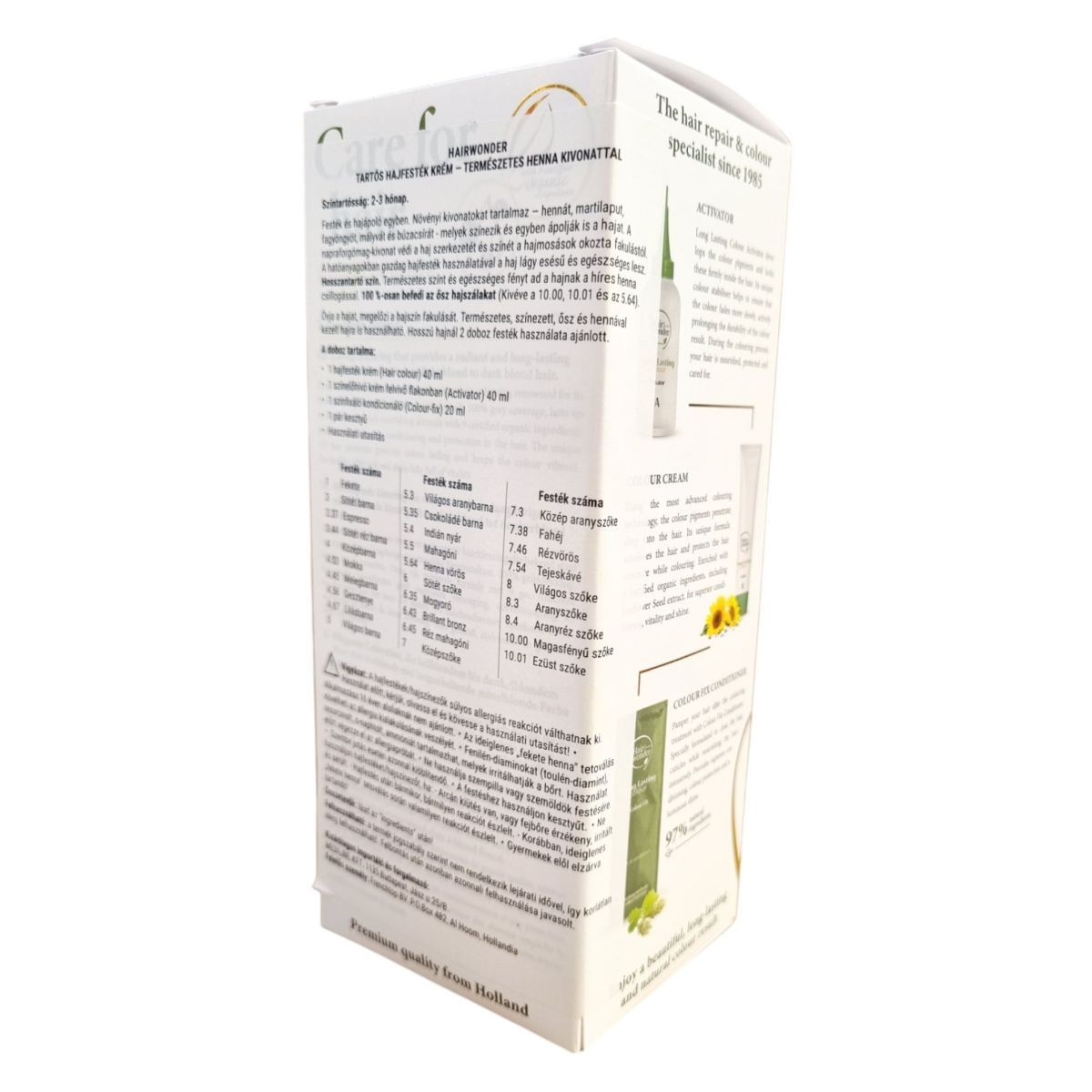 A Hair wonder PREMIUM PERMANENT COLOUR hajfesték krém természetes henna kivonattal készült, amely tartós színt és ápolást biztosíthat a hajnak. A termék 100%-os ősz hajszál fedést ígér, és akár 2-3 hónapig is megőrizheti színét.