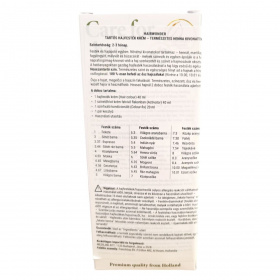 A hajfesték növényi kivonatokat tartalmaz, mint például henna, martilapu, faggyúgyöngy, mályva és búzacsíra, valamint napraforgómag-kivonat.