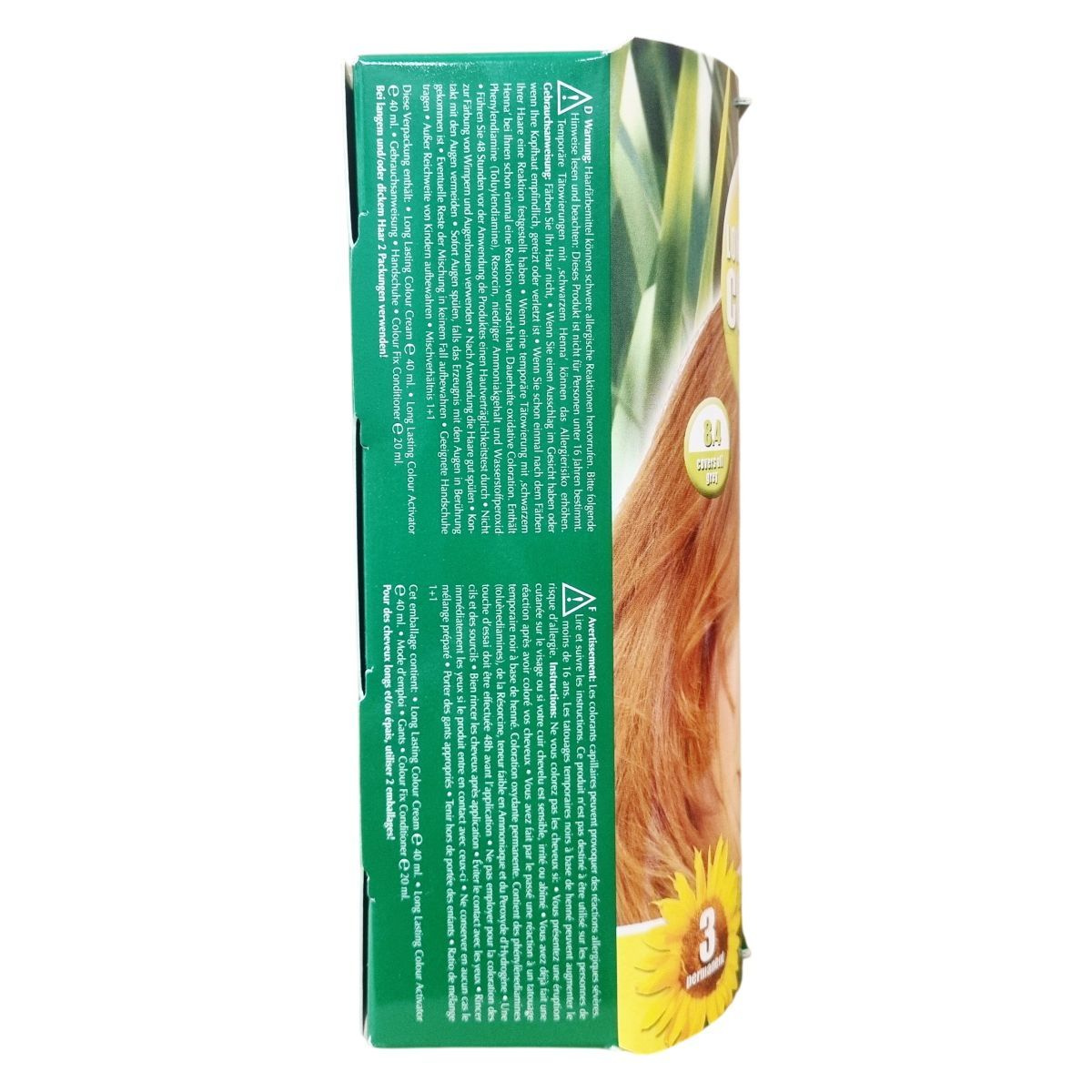 A hajfestékek súlyos allergiás reakciókat okozhatnak. Használat előtt olvassa el és kövesse a használati utasítást. 16 éven aluliaknak nem ajánlott. Ne használja szemöldök vagy szempilla festésére. Szembe jutás esetén azonnal öblítse ki. Ne használja, ha arcbőrén kiütés van, vagy fejbőre érzékeny, irritált, sérült, vagy korábban bármilyen allergiás reakciót tapasztalt. A terméket gyermekek elől el kell zárni.