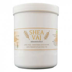 Hidratálja, megnyugtatja, regenerálja a bőrt és gyulladáscsökkentő hatással is rendelkezik. A shea vaj egy Közép-Afrikában élő fa, a karité fa terméséből készül. A karitéfa 20 éves korában hozza első, nagy, szilvára hasonlító, csonthéjas terméseit és akár 200 éven keresztül is terem. A leszüretelt gyümölcsök 60-70% zsírtartalommal rendelkeznek. A tradícionális feldolgozás eredménye egy közepes keménységű, törtfehér színű, édeskés illatú növényi zsiradék, amelyet shea vajnak hívnak. A hidegsajtolás rendkívüli előnye, hogy a shea vaj igen magas A-, E- és F-vitamin tartalmát képes megőrizni, továbbá nem tartalmazza a kémiai kivonáshoz alkalmazott vegyszerek maradékait. Napjainkban a kereskedelemben kapható, mesterséges összetevőket tartalmazó készítmények szinte mindegyike tartalmaz valamilyen kőolajszármazékot (pl. paraffinolajat) amely elfedi a bőr pórusait, ami ezáltal nem képes lélegezni. A sheavaj viszont felszívódik a bőrbe, hosszantartó hidratáló hatást fejt ki, serkenti a bőr öngyógyító képességét. A shea vaj "titka", hogy összetétele nagyon hasonlít az emberi bőrt védő természetes emulzió összetételéhez, vitamintartalma pedig szinte tökéletes bőrápolóvá teszi. Shea vaj használata: önmagában használható bőrápolóként, mely segíti a bőr rugalmasságának megőrzését. Természetesen táplálja és hidratálja bőrét, csökkenti a bőr öregedését, a ráncok kialakulását. Ekcémás bőr ill. neurodermitis esetén a legkiválóbb kozmetikum, napi használat esetén enyhíti a pikkelysömör tüneteit, regeneráló és sebgyógyító hatással rendelkezik, enyhíti a bőr allergiás reakcióját, bőrproblémákat, nyugtató hatással rendelkezik, ajakápolóként is kiváló, segít a terhességi csíkok (stria) kialakulásának megelőzésében. Masszázshoz is használható. Ápolja a törékeny körmöket, hajat. Véd a leégés ellen (2-3 faktornyi védelmet biztosít). Napozás után a shea vaj megnyugtatja az irritált bőrt. Kisebb égési sérülések esetén segíti a bőr regenerálódását. Gyulladáscsökkentő hatása révén alkalmazható kiütésekre, csípésekre. Borotválkozás után nyugtatja és ápolja az irritált bőrt. Bőrpuhító hatású, elősegíti a kirepedezett bőr gyógyulását. Babapopsi kenőcsnek is kiváló. A shea vajat mindig tiszta bőrfelületen alkalmazza. A shea vaj hatékonyságát jelentősen megnövelheti, ha bemasszírozza a bőrbe. A használat gyakoriságát bőrének típusa határozza meg. Eleinte gyakrabban -naponta kétszer, később ritkábban - napi egy alkalommal - lesz rá szüksége. Túladagolni nem lehet, mellékhatása nincs.