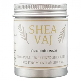 Hidratálja, megnyugtatja, regenerálja a bőrt és gyulladáscsökkentő hatással is rendelkezik. A shea vaj egy Közép-Afrikában élő fa, a karité fa terméséből készül. A karitéfa 20 éves korában hozza első, nagy, szilvára hasonlító, csonthéjas terméseit és akár 200 éven keresztül is terem. A leszüretelt gyümölcsök 60-70% zsírtartalommal rendelkeznek. A tradícionális feldolgozás eredménye egy közepes keménységű, törtfehér színű, édeskés illatú növényi zsiradék, amelyet shea vajnak hívnak. A hidegsajtolás rendkívüli előnye, hogy a shea vaj igen magas A-, E- és F-vitamin tartalmát képes megőrizni, továbbá nem tartalmazza a kémiai kivonáshoz alkalmazott vegyszerek maradékait. Napjainkban a kereskedelemben kapható, mesterséges összetevőket tartalmazó készítmények szinte mindegyike tartalmaz valamilyen kőolajszármazékot (pl. paraffinolajat) amely elfedi a bőr pórusait, ami ezáltal nem képes lélegezni. A sheavaj viszont felszívódik a bőrbe, hosszantartó hidratáló hatást fejt ki, serkenti a bőr öngyógyító képességét. A shea vaj "titka", hogy összetétele nagyon hasonlít az emberi bőrt védő természetes emulzió összetételéhez, vitamintartalma pedig szinte tökéletes bőrápolóvá teszi. Shea vaj használata: önmagában használható bőrápolóként, mely segíti a bőr rugalmasságának megőrzését. Természetesen táplálja és hidratálja bőrét, csökkenti a bőr öregedését, a ráncok kialakulását. Ekcémás bőr ill. neurodermitis esetén a legkiválóbb kozmetikum, napi használat esetén enyhíti a pikkelysömör tüneteit, regeneráló és sebgyógyító hatással rendelkezik, enyhíti a bőr allergiás reakcióját, bőrproblémákat, nyugtató hatással rendelkezik, ajakápolóként is kiváló, segít a terhességi csíkok (stria) kialakulásának megelőzésében. Masszázshoz is használható. Ápolja a törékeny körmöket, hajat. Véd a leégés ellen (2-3 faktornyi védelmet biztosít). Napozás után a shea vaj megnyugtatja az irritált bőrt. Kisebb égési sérülések esetén segíti a bőr regenerálódását. Gyulladáscsökkentő hatása révén alkalmazható kiütésekre, csípésekre. Borotválkozás után nyugtatja és ápolja az irritált bőrt. Bőrpuhító hatású, elősegíti a kirepedezett bőr gyógyulását. Babapopsi kenőcsnek is kiváló. A shea vajat mindig tiszta bőrfelületen alkalmazza. A shea vaj hatékonyságát jelentősen megnövelheti, ha bemasszírozza a bőrbe. A használat gyakoriságát bőrének típusa határozza meg. Eleinte gyakrabban -naponta kétszer, később ritkábban - napi egy alkalommal - lesz rá szüksége. Túladagolni nem lehet, mellékhatása nincs.