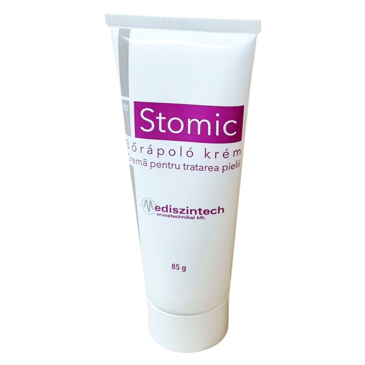 A Stomic bőrápoló krém orvostechnikai készítmény, amely alkalmas az irritált, érzékeny bőr ápolására. Rendszeres használata segíti a bőr állapotának javítását, különösen felázás és hámhiány esetén. A krémet a megtisztított és száraz bőrre vékony rétegben kell felvinni, majd óvatosan be kell masszírozni. A termék összetevői között megtalálhatók a bőrregenerálás és hidratálás szempontjából fontos anyagok, mint a panthenol, allantoin és niacinamide. A csomagoláson található a gyártási tételszám, de a lejárati idő nem szerepel a termék ismertetőjében.