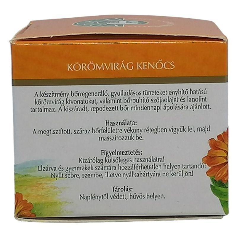 A kenőcs körömvirág hatóanyaga elősegíti a hámosodást és a sejtmegújulást, védi és nyugtatja a bőrt. Antibiotikus-, bőrsarjadást és hámosodást elősegítő hatású. Az E-vitamin tartalmú szójaolajnak köszönhetően védi a bőrt a környezeti ártalmakkal szemben. A krémet száraz, érzékeny bőrűeknek ajánljuk.