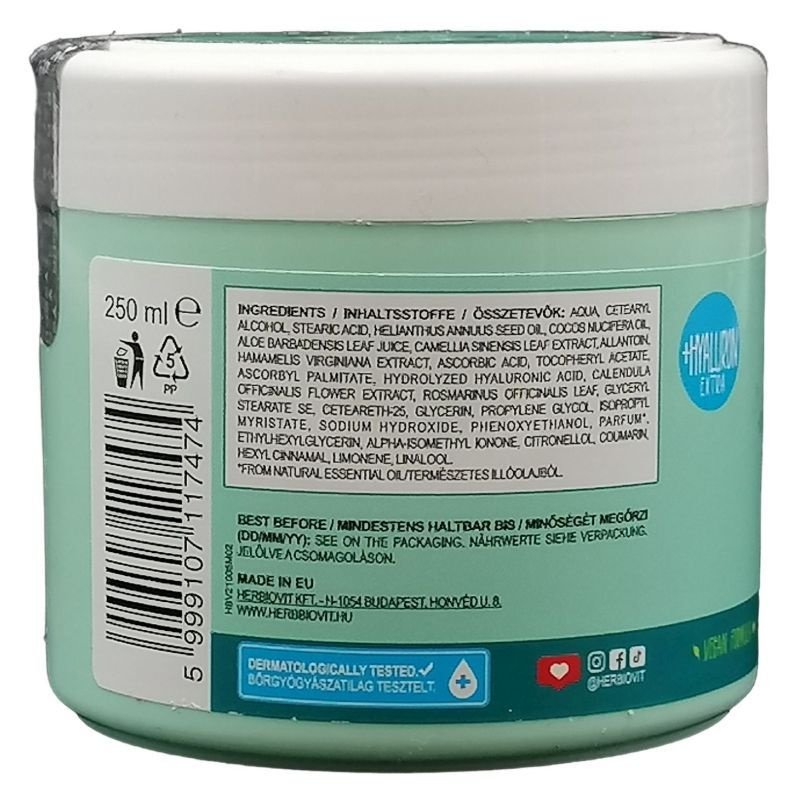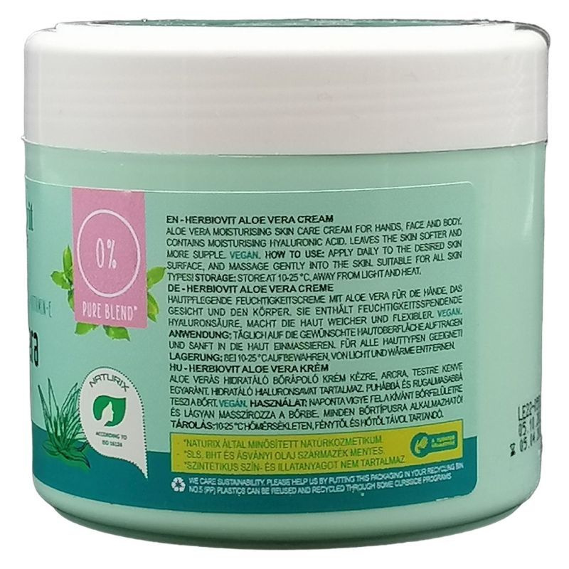 Aloe verás hidratáló bőrápoló krém kézre, arcra, testre kenve egyaránt. Hidratáló hialuronsavat tartalmaz. Puhábbá és rugalmasabbá teszi a bőrt. Vegán formula.