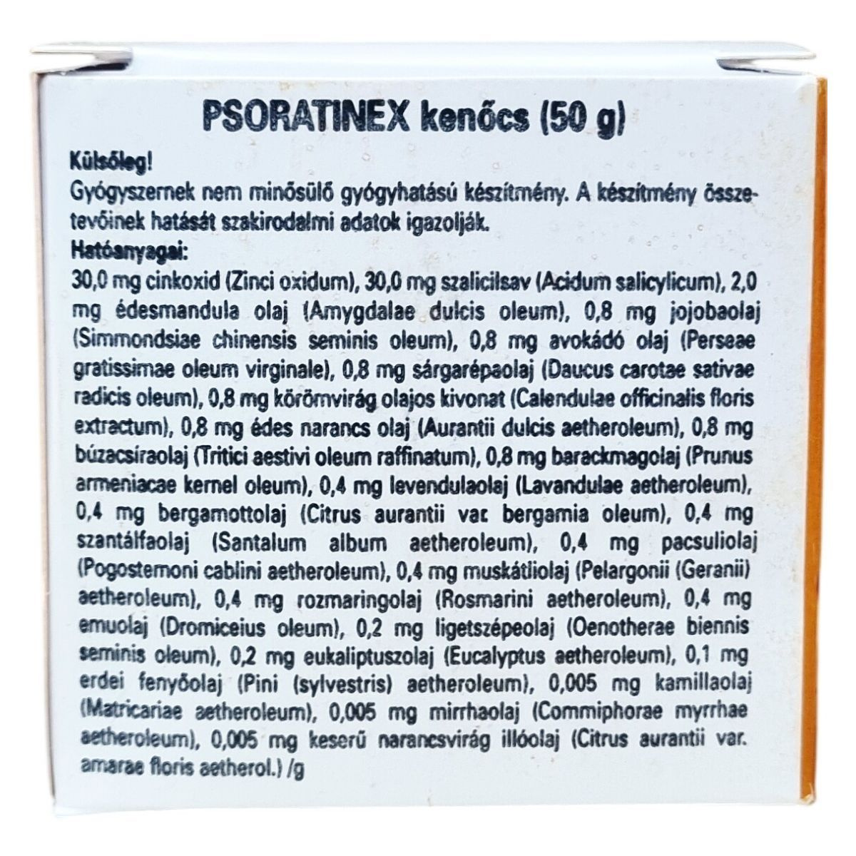 A Psoratinex kenőcs egy gyógyszermeknek nem minősülő gyógyhatású készítmény, amelynek összetevőinek hatását szakirodalmi adatok támasztják alá. A kenőcs hatékonyan csökkenti a psoriasis enyhe és középsúlyos krónikus formájának tüneteit, amelyek között szerepel az erythema, beszűrődés, parakeratosis és viszketés. Emellett segít ápolni a száraz, hámló, pikkelyes bőrt, hozzájárulva annak regenerálódásához. Használata előtt a bőrfelületet a Psoratinex tisztító géllel célszerű megtisztítani és szárazra törölni. Körkörös mozdulatokkal történő bekenés után a hatóanyagok mélyen felszívódnak a bőrbe. A készítmény kombinált természetes olajokat, illóolajokat és hatóanyagokat tartalmaz, melyek megnyugtatják a bőrt és elősegítik a gyógyulást. Magyarországi forgalmazója a FRANKL Pharma Europe Kft., a forgalomba hozatali engedély jogosultja pedig az ausztrál Tirsel PTY Ltd.