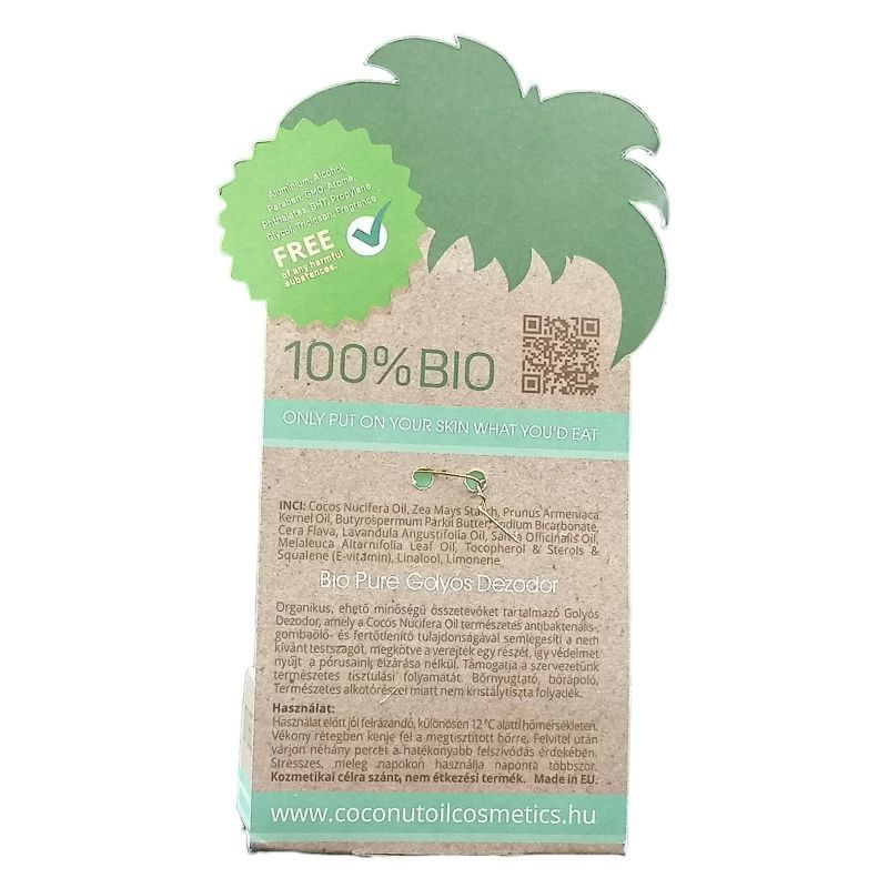 Biztonságos és természetes védelmet keresel? Illatos és kényeztető kókuszdezodorunk megadja Neked, amire vágysz! A kókuszolaj a nagy mennyiségű laurinsavnak és kaprilsavnak köszönhetően gomba- és baktériumölő, antioxidáns, valamint nyugtató hatással bír. Ezeknek a hatásoknak a révén, valamint a többi egészséges összetevő segítségével a Pure golyós dezodor szabályozza a kellemetlen szagokat és az izzadást, anélkül, hogy gátolná a test méregtelenítését.