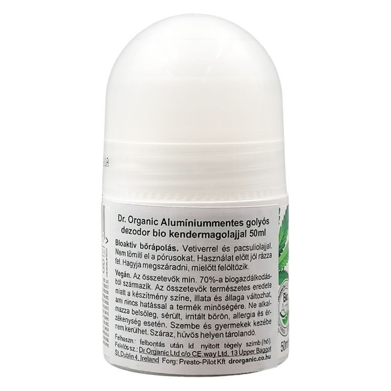 Alapja a bioaktív kendermagolaj, Aloe Vera, Napraforgó olaj, Izlandi moha és E-vitamin. Hosszantartó védelmet biztosít, kisimítja és revitalizálja a bőrt. A Dr. Organic alumíniummentes golyós dezodor bioaktív kendermagolajjal.