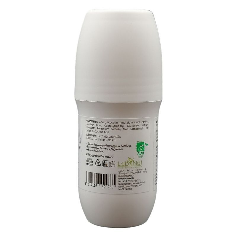 Az AIAB (Olasz Biogazdálkodási Szövetség) által tanúsított golyós dezodor, mely 24 órán át tartó hatást biztosít, irritáció nélkül. A biogazdálkodásból származó összetevői közül a timsó (potassium alum) csökkenti a baktériumok szaporodását, ennek következtében a kellemetlen testszagot; az aloe vera pedig gyulladáscsökkentő és nyugtató hatású, így ideális érzékeny vagy irritált bőr kezelésére is.