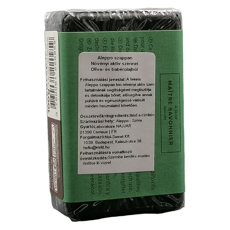 Felhasználási javaslat: A fekete Aleppo szappan bio növényi aktív szén tartalmának segítségével megtisztítja és detoxikálja a bőrét, elősegítve annak puhává és egészségessé válását minden használatot követően.