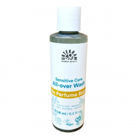 Az Urtekram Sensitive Care All-over Wash egy 100%-ban természetes eredetű, COSMOS Organic minősítéssel rendelkező babaápolási termék, amely bio összetevőket használ. Hidratáló aloe vera és glicerin kombinációja gondoskodik a baba bőrének gyengéd ápolásáról hajmosás és testfürdetés során. Illatanyagmentes, szemkímélő formula, amely nem vált ki allergiás reakciókat és a baba érzékeny bőréhez igazodik. A termék újrahasznosítható, és környezetbarát csomagolásban kerül forgalomba. Származási helye Dánia.
