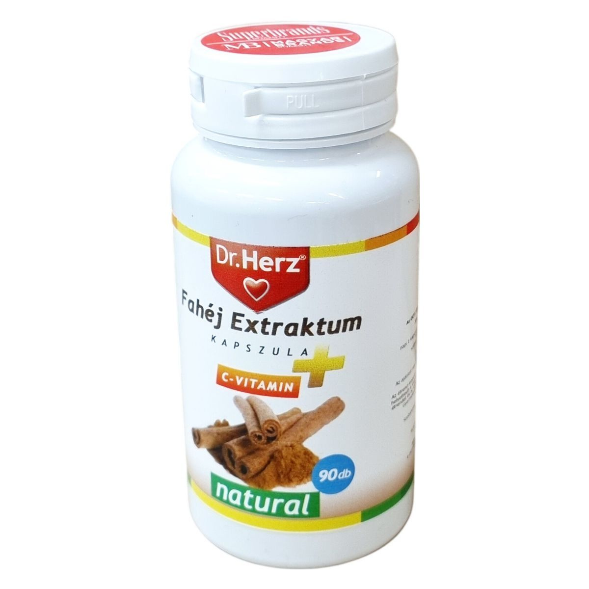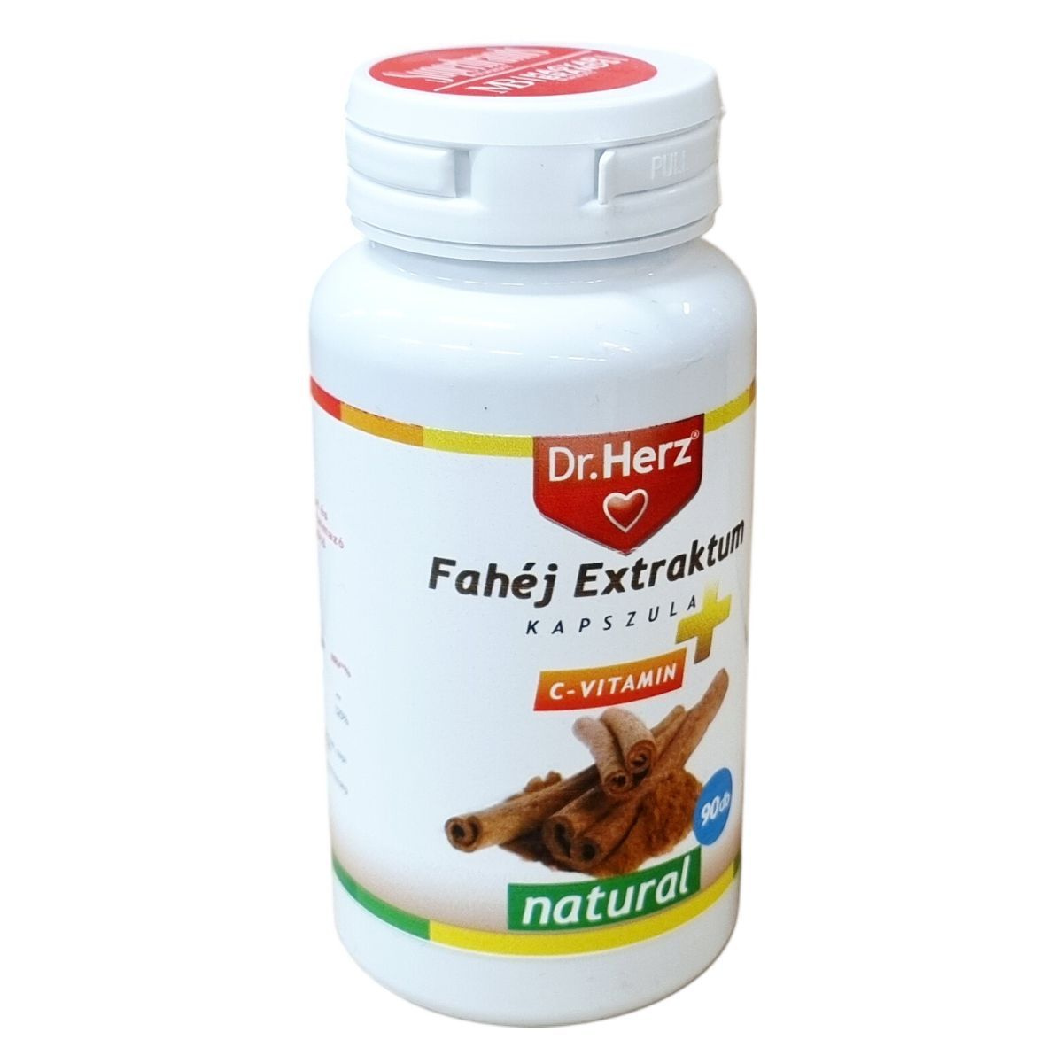 A Dr.Herz Fahéj Extraktum kapszula egy étrend-kiegészítő, amely fahéj kivonatot és C-vitamint tartalmaz. A termék napi 1 kapszulás adagolásban ajánlott, amelyet főétkezések előtt, bőséges folyadékkal, szétrágás nélkül kell bevenni. A csomagban 90 kapszula található, összes tömege 33,7 g. A termék minőségét a csomagoláson jelzett ideig megőrzi. A termék gyermekektől elzárva tartandó és az ajánlott napi adagot nem szabad túllépni.