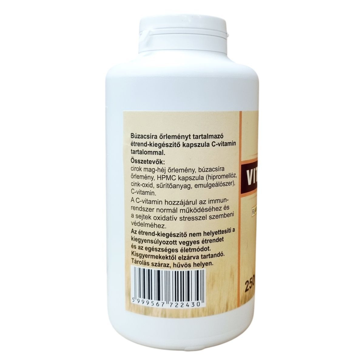 C-vitamin 60 mg/kapszula (NRV 75%), 180 mg/nap (NRV 225%)