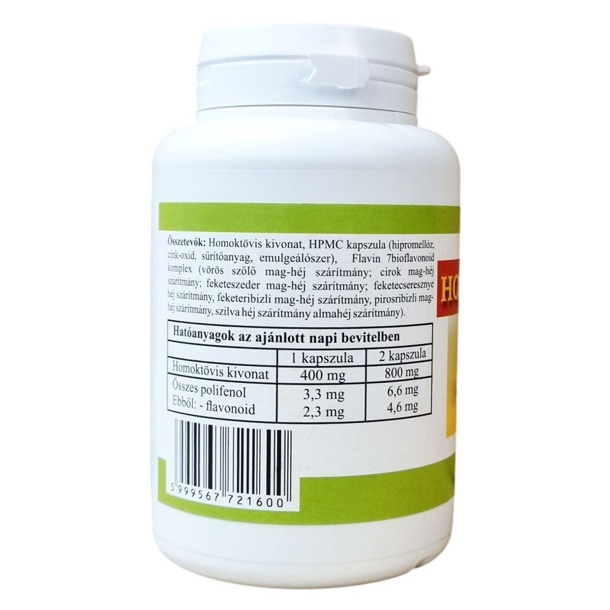 Összes polifenol 3,3 mg/1 kapszula, 6,6 mg/2 kapszula